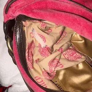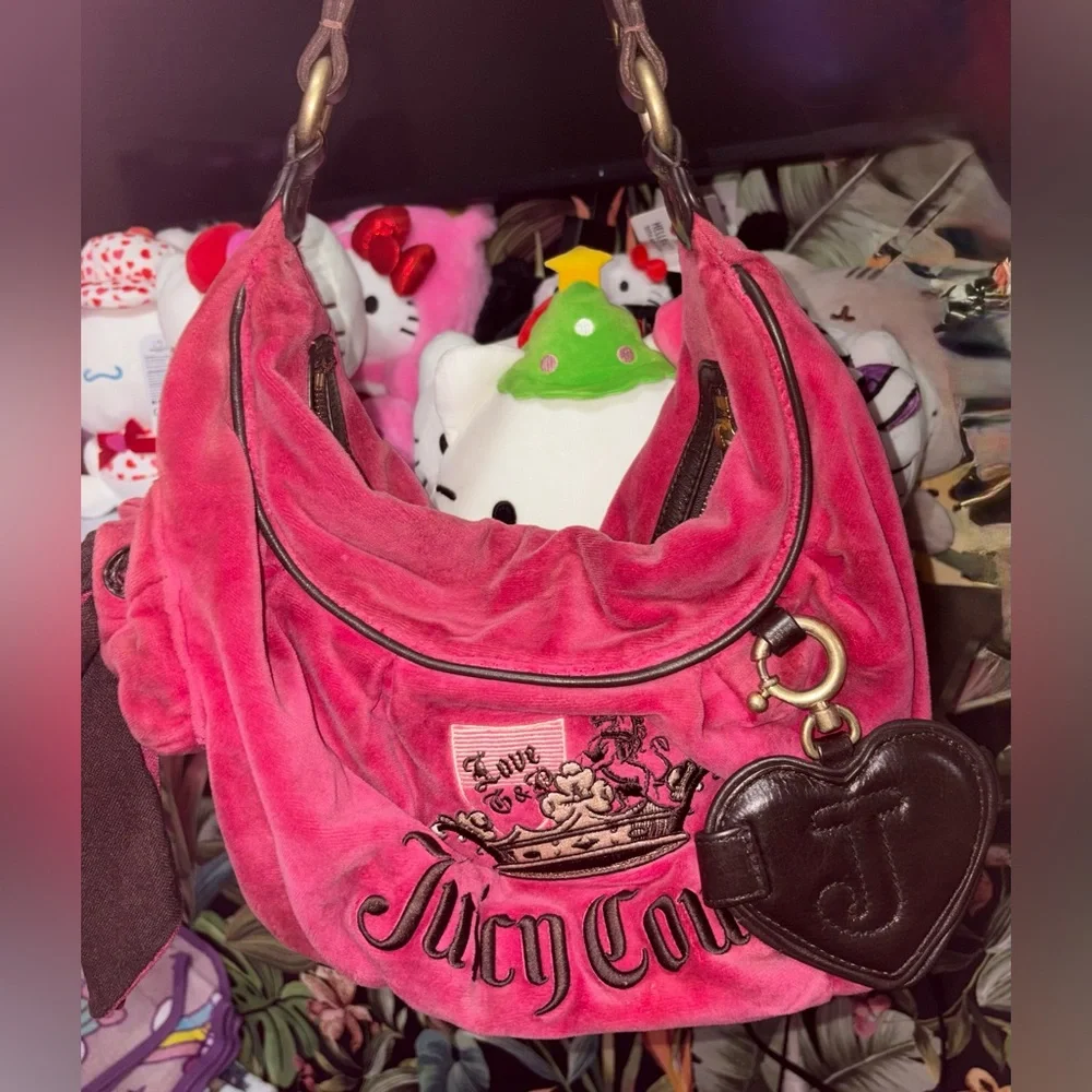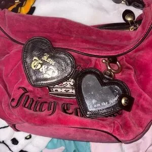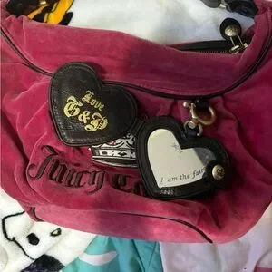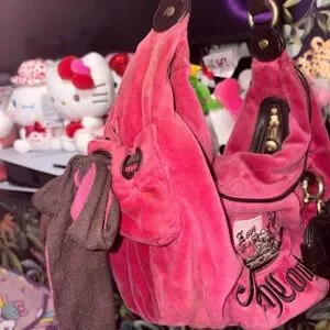 Juicy Couture pink velour shoulder bag. I had brought it and got it repaired and has just been sitting in my closet #y2kfashion #glam #juicybag #juicycouture