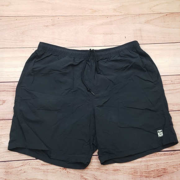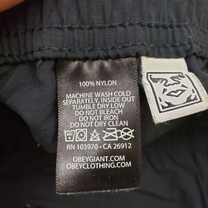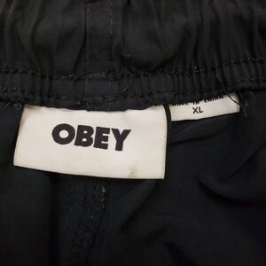Keywords: OBEY, nylon shorts, black shorts, drawstring shorts, casual shorts, mens shorts, lightweight shorts, athletic shorts, streetwear, XL shorts, elastic waist shorts, summer shorts, retro shorts, vintage shorts