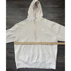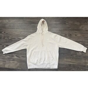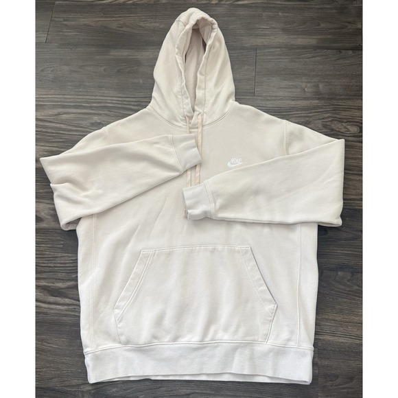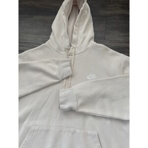 Nike Club Fleece Pullover Hoodie Sweatshirt Beige White Logo Unisex Large