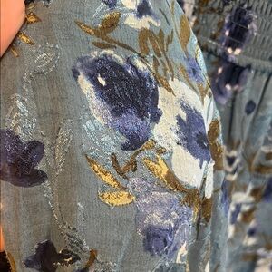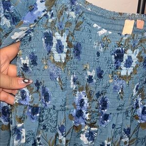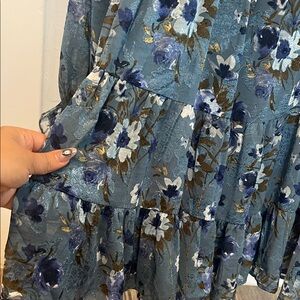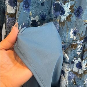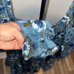 This chic floral dress features a stunning blue design, perfect for adding elegance to your wardrobe. Ideal for any occasion has smocking across the bust and all the way around the back is lined and heavy.