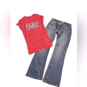 Aeropostale baby tee and low-rise bootcut jeans, featuring a cute design and a fun, flirty style #y2kfashion #grungevibes