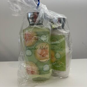 Bath & Body Works 25th Anniversary Cucumber Melon duo. Includes full-size Shower Gel (10 fl oz / 295 mL) and Body Lotion (8 fl oz / 236 mL). Still sealed in original packaging.