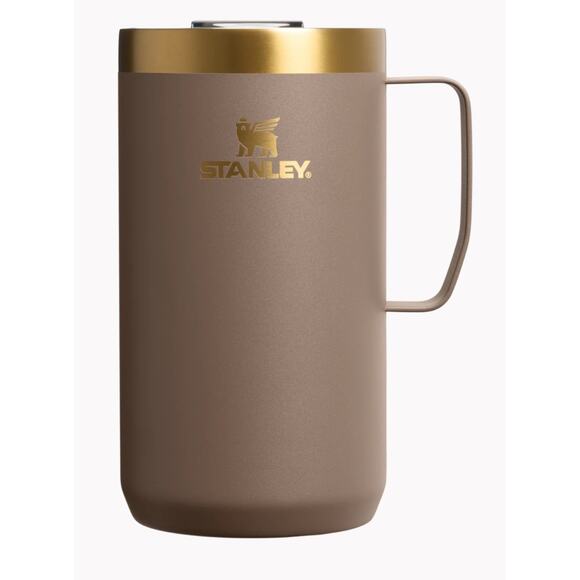 BRAND NEW LIMITED EDITION STANLEY STAY HOT CAMP MUG | 24 OZ, ESPRESSO GOLD W SLIDE CLOSURE LID - COMES WITH THE ORIGINAL STANLEY BOX