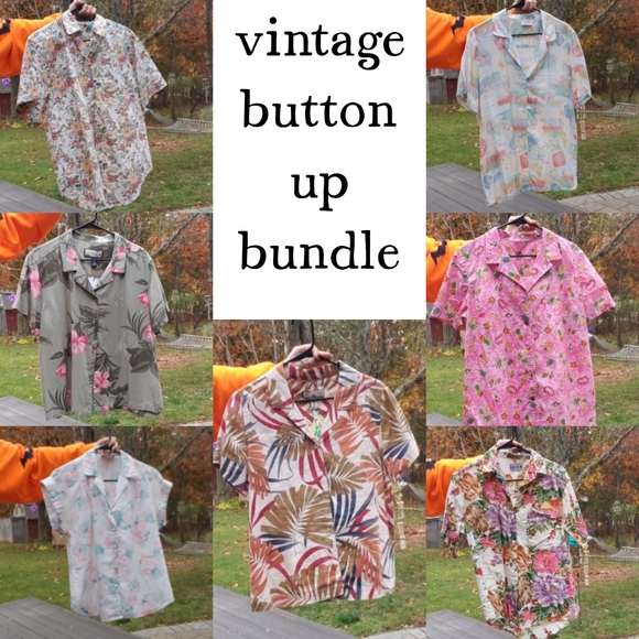 Vintage Bundle Lot of Seven 7 Button Up Collared Tops