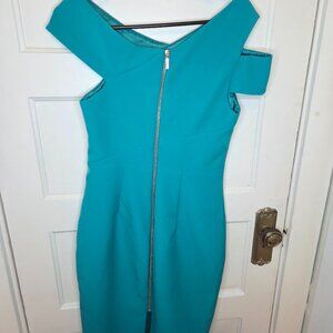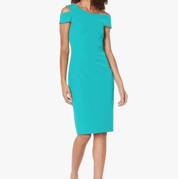 The Ted Baker London Yandal Bodycon Asymmetric Neckline Dress in Teal Blue is a stylish and versatile piece perfect for various occasions such as travel, weddings, parties, and formal events.