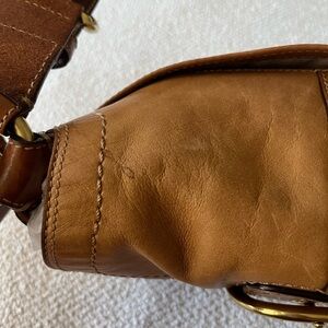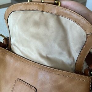 🌟With a few inside marks and water stains. Purse has been cleaned inside and out. Leather was conditioned. Brass was polished. Please examine all photos for condition, and reach out if you have any doubts.