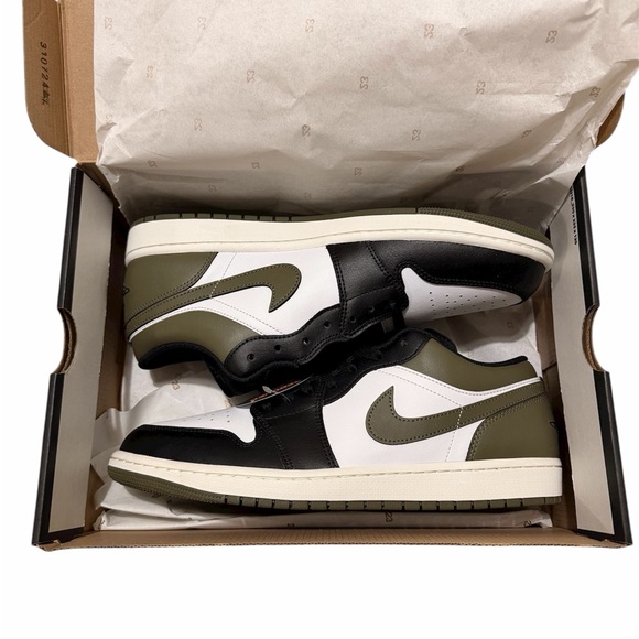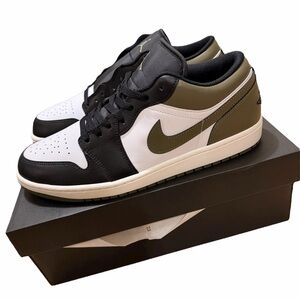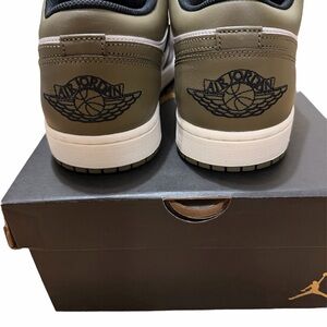 Brand new Nike Air Jordan 1 Low in the Shadow Olive / Black / White colorway.
