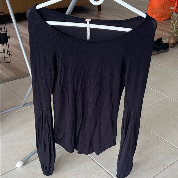 Chic black long sleeve tee. Soft fabric. ballon like sleeve towards the bottom