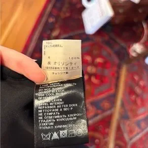 100% virgin wool woven, shockingly soft and lightweight. Wrap style with sturdy twill-tape ties that allow some adjustability. Intended to sit low on the waist/hips. Made in Tunisia.