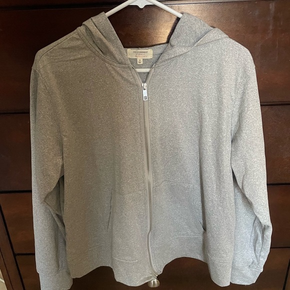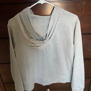 Stylish heather gray zip-up jacket. Features a cozy hood and soft fabric. New , never worn