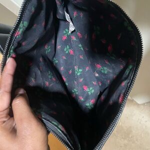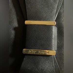Chic black clutch featuring gold accents. Ideal for stylish outings.