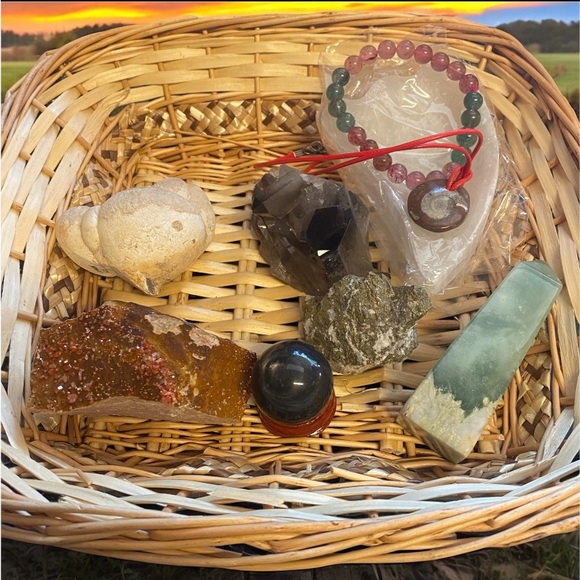 A beautiful collection of assorted crystals and stones. Includes a variety of shapes and colors. Perfect for collectors or as decorative pieces.