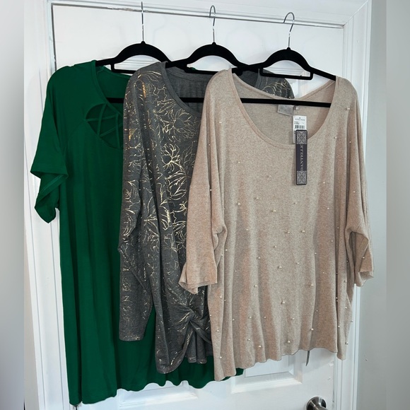All 3 shirts are Women’s size 3X in various brands and are new with tags. Perfect for any occasion.