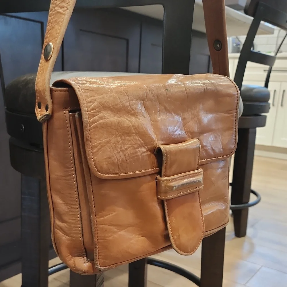 Elevate your style with this classic tan leather messenger bag, perfect for any occasion.