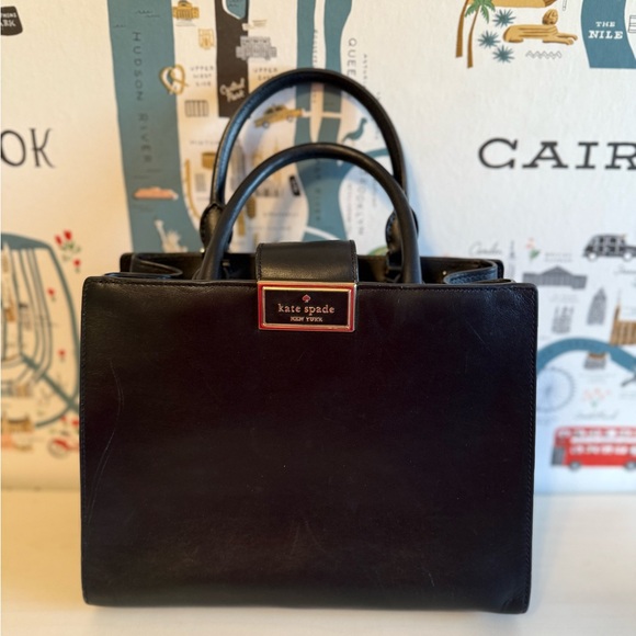 Chic black satchel with sturdy handles. Ideal for everyday use. Signature Kate Spade style.
