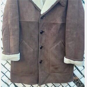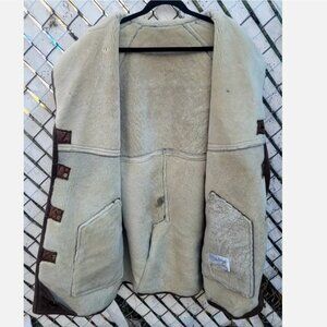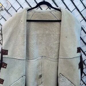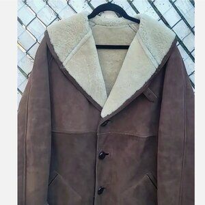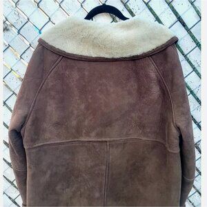 Vintage Genuine Sheepskin Shearling Wool Fur Coat Jacket Tan Brown Men's L / XL