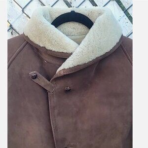 Gorgeous & luxurious heavyweight vintage genuine sheepskin trench coat / overcoat !