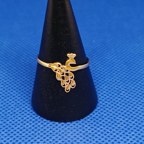 Chic gold rings with peacock design. Ideal for stylish flair.