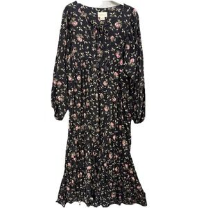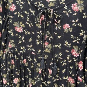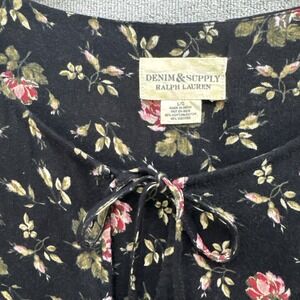 Channeling vintage charm with romantic boho flair, this Denim & Supply Ralph Lauren dress features a soft floral print on black, long puff sleeves, and a tiered skirt. Lightweight and flowy, it's perfect for transitional seasons or layering up with boots and a cardigan for a cozy cottagecore look.