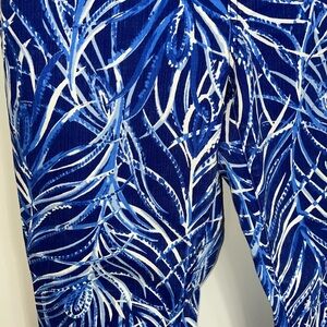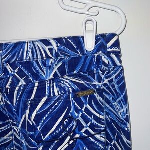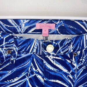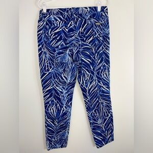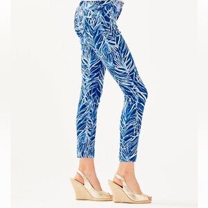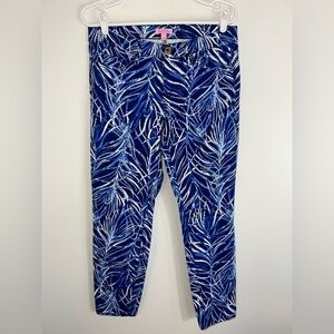 Stylish blue pants with a white print. Perfect for casual outings. Lilly Pulitzer South Ocean Skinny Crop size 10