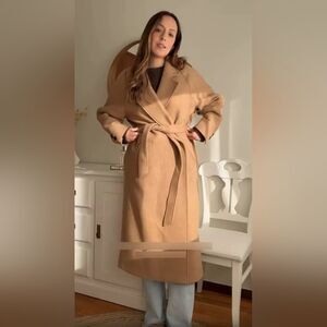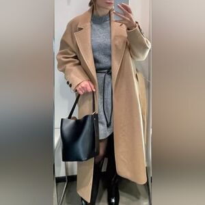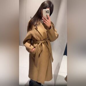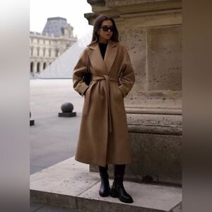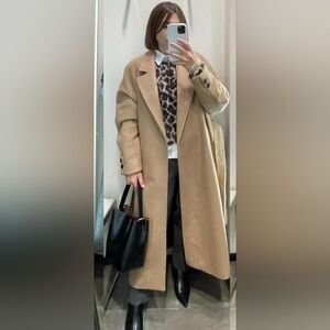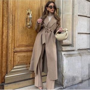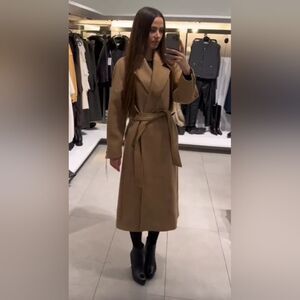 This Zara woman longline coat is an ideal addition to your wardrobe. Made from 42% wool, the mid-length coat comes with a belted closure and long sleeves. The classic design is perfect for autumn, winter, and spring seasons. The coat is available in size M and features a viscose lining. The fabric type is also 42% wool, making it warm and comfortable to wear. The coat is suitable for any occasion and is perfect for women who want to look stylish.