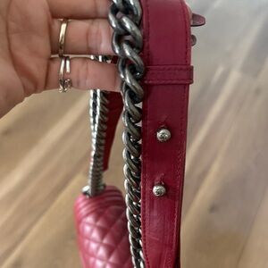 Make a statement with this elegant red quilted crossbody bag. The bold chain strap adds a touch of sophistication to any outfit.
