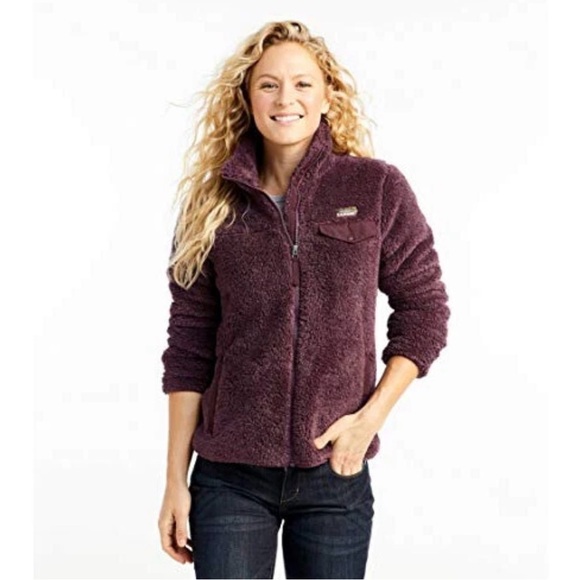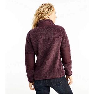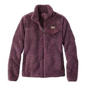 NWOT! Size XL. Deep burgundy colored women's L.L. Bean Hi-Pile Fleece Jacket. Full-Zip, plush 100% polyester with woven patches at elbows and shoulders, zipped hand pockets, left chest snap pocket & patch logo. Super soft and warm!