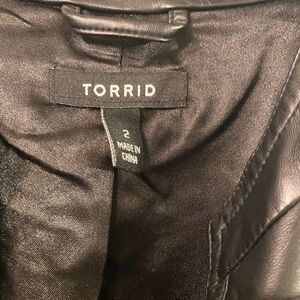 Chic charcoal leather jacket. Features bold button accents. Perfect for any occasion.