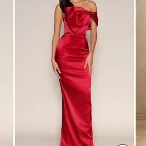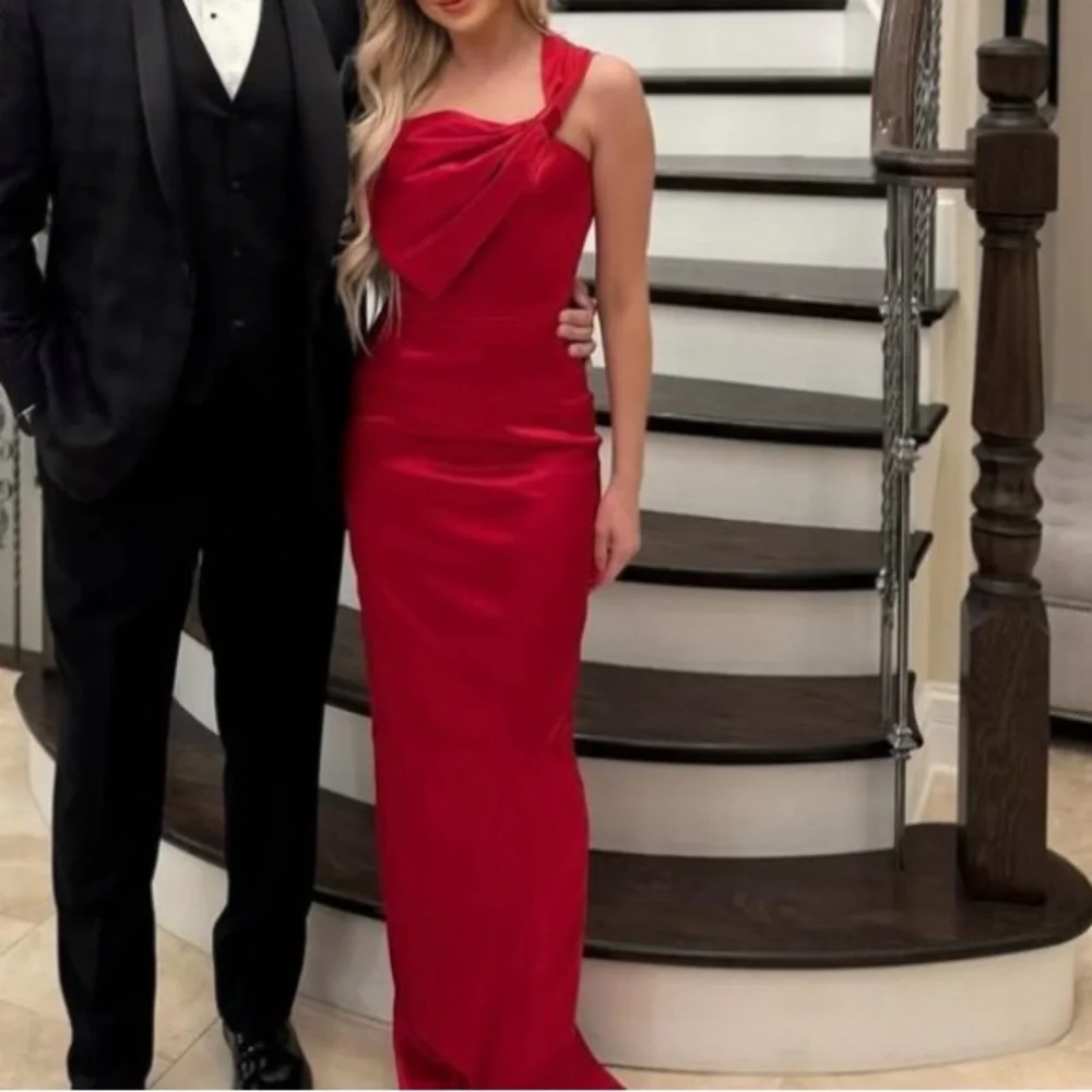 Stunning red evening gown with a bow on the from to wear two different ways
