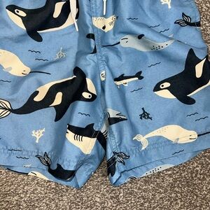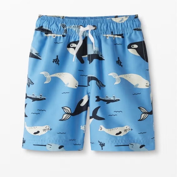 Stylish swim shorts with a unique pattern. Ideal for summer fun. Hanna Andersson Blue Whale Print Swim Shorts 6-7 years