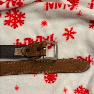 Rugged Carhartt with genuine Italian leather 2022 belt. Black with brown accents. Ideal for everyday wear.