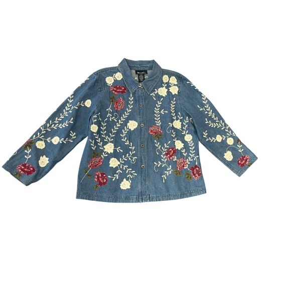 All over feminine floral embroider detailing on front and back of top.