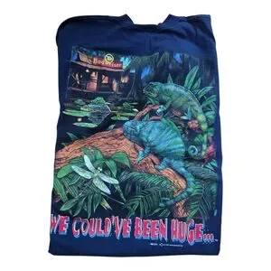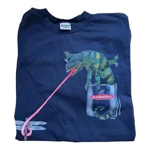 Navy t-shirt featuring a vintage 97' Busldweiser Chameleon graphic on the front and back. Size: 2XL. Condition: Good