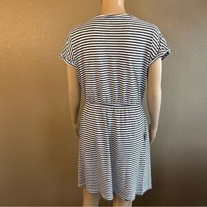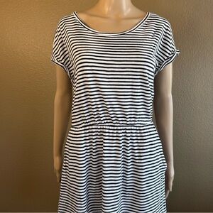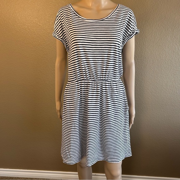 This Dress is a great causal dress to throw on in the warmer days. It is a soft and comfortable dress that is made from a blend of cotton and modal. The mannequin does not capture how cute this dress is it looks oversize on but I hope it gives you an idea. The dress has a scrunched up waist with side pockets.