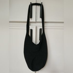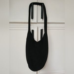 Chic black knit tote by The Sak. Perfect for everyday use. Stylish and versatile.