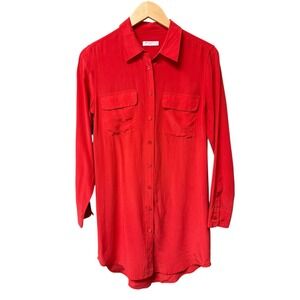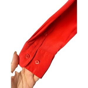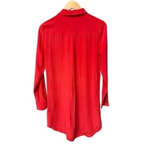 Keywords: silk dress, red dress, button down, long sleeve, shirtwaist, designer, luxury, minimalist, chic, business casual, workwear, versatile, quality fabric