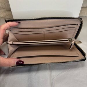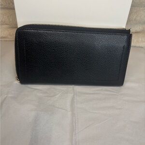 This is a Kate Spade New York Eva L-Zip continental wallet in black pebbled leather with gold-tone hardware.