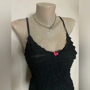In great condition. No size tag but fits like a medium. Pit to pit measures to about 16” flat but can stretch another inch or two. Style reminds me of hustler lingerie.