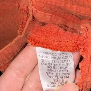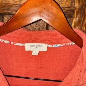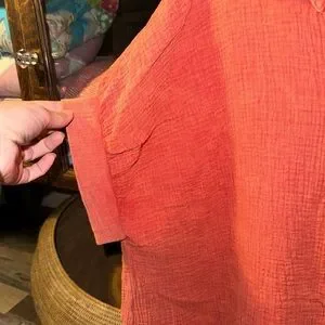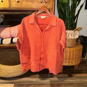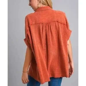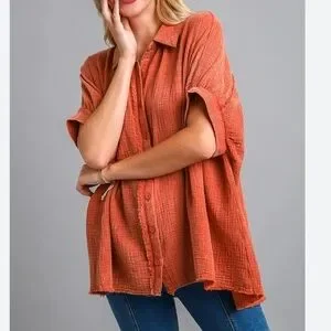 Umgee Orange Cotton Gauzy Boxy Oversized Button Down Top Size S Distressed. Great shape!