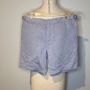 Stylish Orlebar Brown shorts in sky blue with subtle stripes. Ideal for summer wear.