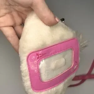 Has some wear. Markings on strap,and on plush as well (pictured) . Please examine all photos. Nice collectible item!