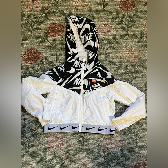 Nike Windrunner hooded zip up jacket in black & white, size boys small 🖤🤍
