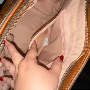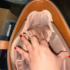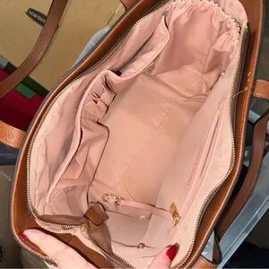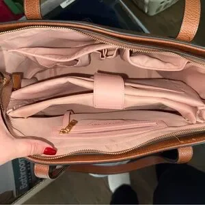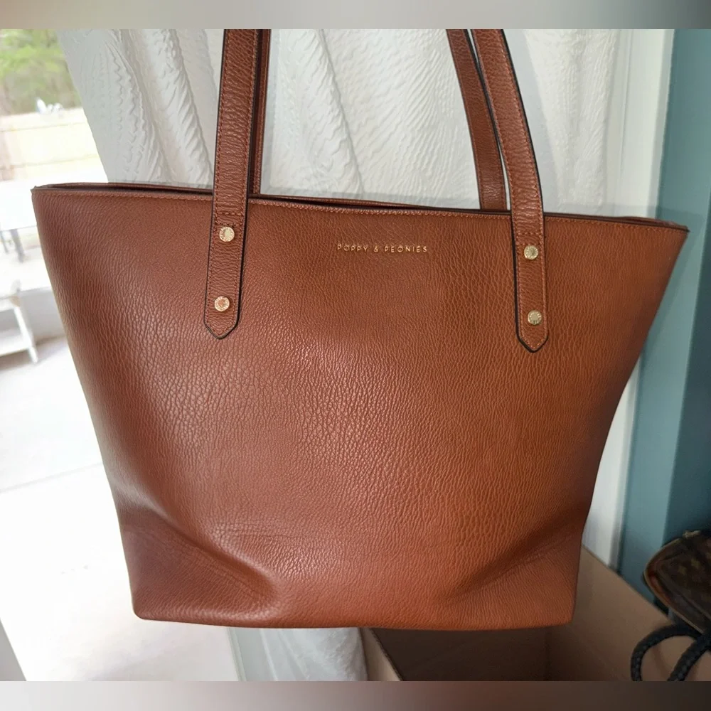 This Poppy & Peonies vegan leather tote is in excellent, like-new condition and has only been used a handful of times. The cognac vegan leather is smooth, structured, and shows minimal wear. Interior is clean and well cared for.