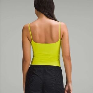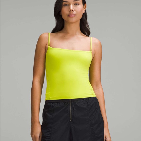 Vibrant yellow tank with spaghetti straps. Ideal for layering or casual wear. Soft and stylish.