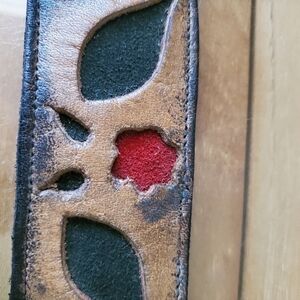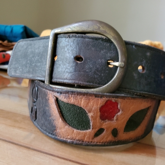 Leather Hand Tooled Floral Leather Belt Size 34 -36 Made In Hati