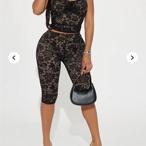 Elegant black lace two-piece set with spaghetti straps. Perfect for a night out. Brand new . too big for me