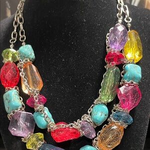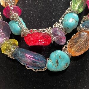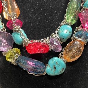 Vibrant and eye-catching, this necklace features a stunning array of colorful gemstones. Perfect for adding a pop of color to any outfit.