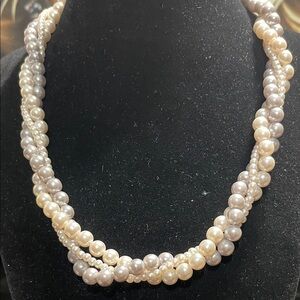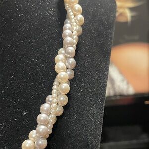 This elegant pearl necklace features a stunning combination of cream and gray pearls, perfect for any occasion. Elevate your style with this timeless piece.