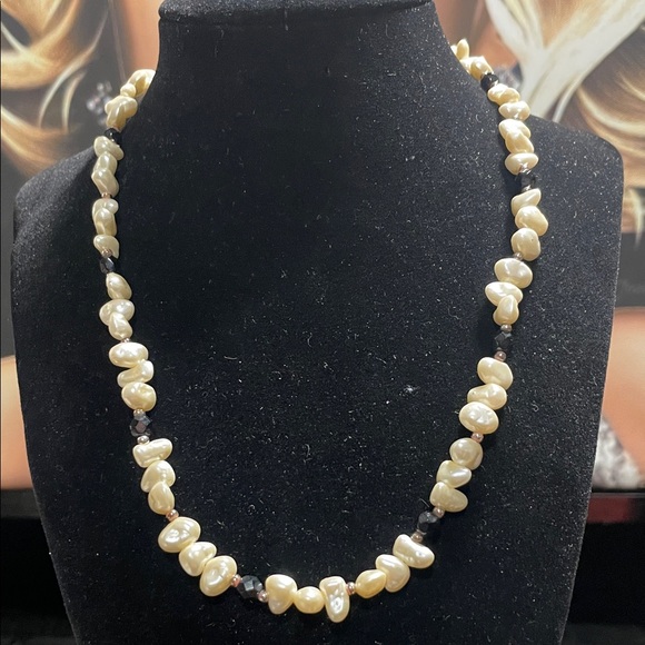 This elegant pearl necklace features lustrous cream pearls, perfect for any occasion. Add a touch of sophistication to your outfit.