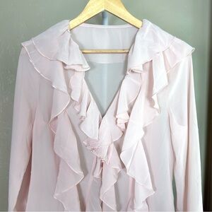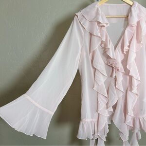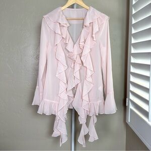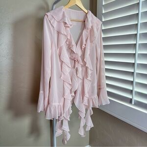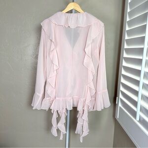 Commense Pink Sheer Ruffle Chiffon Blouse NWT L